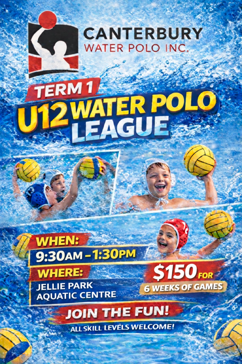 Our U12 League kicks off each week with a 30-minute skills session and 25 minute game designed to build confidence, teamwork, and core water polo techniques. Players will learn passing, shooting, positioning, and game awareness in a fun, supportive environment. After skills, athletes jump straight into an exciting, fast-paced game where they can put their new abilities into action. It’s the perfect blend of learning and play—ideal for young athletes of all experience levels!